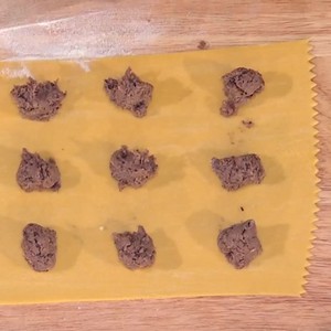 Étalez la pâte finement et placez les noix de garniture dessus. Repliez la pâte sur la garniture en la faisant bien adhérer.