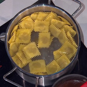 Avec la roue, découpez les agnolotti. Nous les cuisinons dans de l’eau bouillante salée.