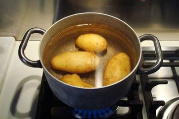 Lavez et faites bouillir les pommes de terre dans leur peaux, en commençant par de l’eau froide. Lavez les courgettes et les carottes, enlevez les extrémités et coupez-les en cubes.