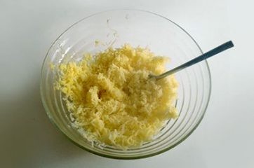 Une fois cuites, épluchez les pommes de terre et écrasez-les à travers un écraseur, puis ajoutez le parmesan et l’œuf à la purée obtenue.