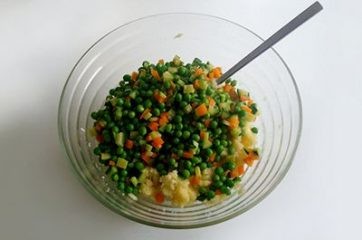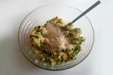 Ensuite, ajoutez les légumes refroidis, mélangez, ajoutez la chapelure et assaisonnez avec du sel.