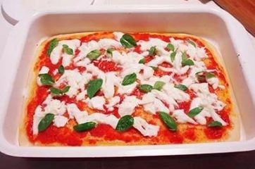 À ce stade, votre pâte à pizza est prête à être garnie selon vos envies. J'ai préparé une Margherita classique. Préchauffez le four à 250 °C (thermostat 6) et faites précuire la pâte pendant environ 15 minutes avec la sauce tomate, l'huile et le sel, en plaçant le plat sur la grille du bas. Ajoutez ensuite la mozzarella égouttée et déchirée, ainsi que le basilic, et poursuivez la cuisson pendant environ 12 minutes sur la grille du milieu. Bien entendu, le temps de cuisson peut varier légèrement selon votre four.
