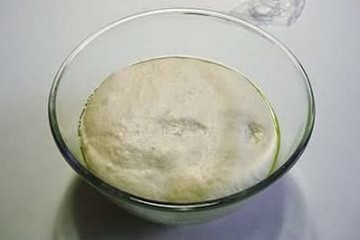 Travaillez jusqu’à obtenir une pâte douce et lisse que vous mettrez dans un bol en verre graissé d’huile. Couvrez de film plastique et laissez lever à l’écart des courants d’air jusqu’à ce que la pâte ait triplé en volume. En hiver, tu peux le mettre éteint au four avec la lumière allumée.