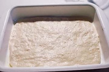 Ma pâte a levé pendant environ 3 heures. Retirez-la délicatement du bol et étalez-la à la main dans un moule huilé, en lissant les bords et en appuyant légèrement au centre du bout des doigts. Laissez-la lever encore 30 minutes.