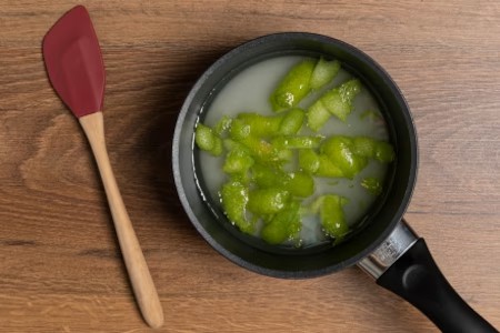 Préparer un sorbet au citron sans sorbetière est simple. Lavez les citrons et retirez le zeste, en faisant attention de ne pas enlever également la partie blanche et amère. Coupez-les en deux et pressez-les pour récupérer le jus. Versez l’eau dans une casserole et ajoutez le sucre. Trempez-y le zeste et portez-le à feu doux. |